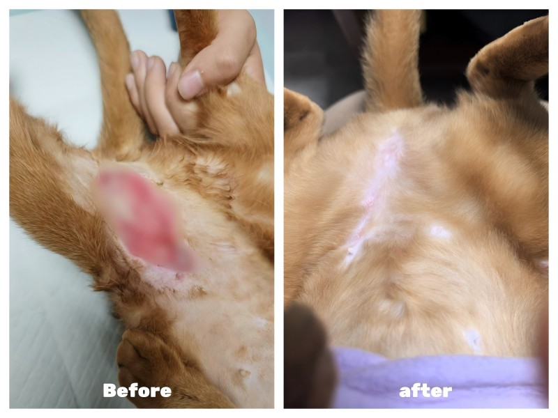 Après avoir accouché avec succès, la chatte Nuonuo a malheureusement développé une rupture de la glande mammaire. Cette condition a non seulement causé une grande douleur à Nuonuo, mais a également affecté les chatons nouvellement nés. Face à cet épineux problème, l'équipe vétérinaire du Ruipai Kenuo Pet Hospital, s'appuyant sur sa riche expérience clinique et sa perspicacité professionnelle, a résolument utilisé lelaser vétérinaire avancé VETMEDIXpour traiter précisément Nuonuo. Par rapport aux méthodes traditionnelles de traitement des traumatismes, la thérapie au laser a montré des effets plus remarquables. Il a considérablement raccourci la période de guérison de la rupture de la glande mammaire de Nuonuo et réduit la probabilité d'hyperplasie de cicatrisation des plaies, avec des effets curatifs significatifs. Après huit jours de traitement professionnel efficace, la condition physique de Nuonuo s'est considérablement améliorée et la situation de guérison est bonne.
